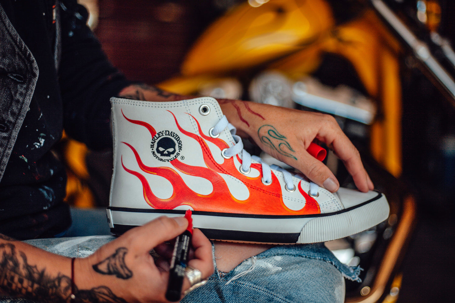 Hand painted Harley-Davidson leather high tops