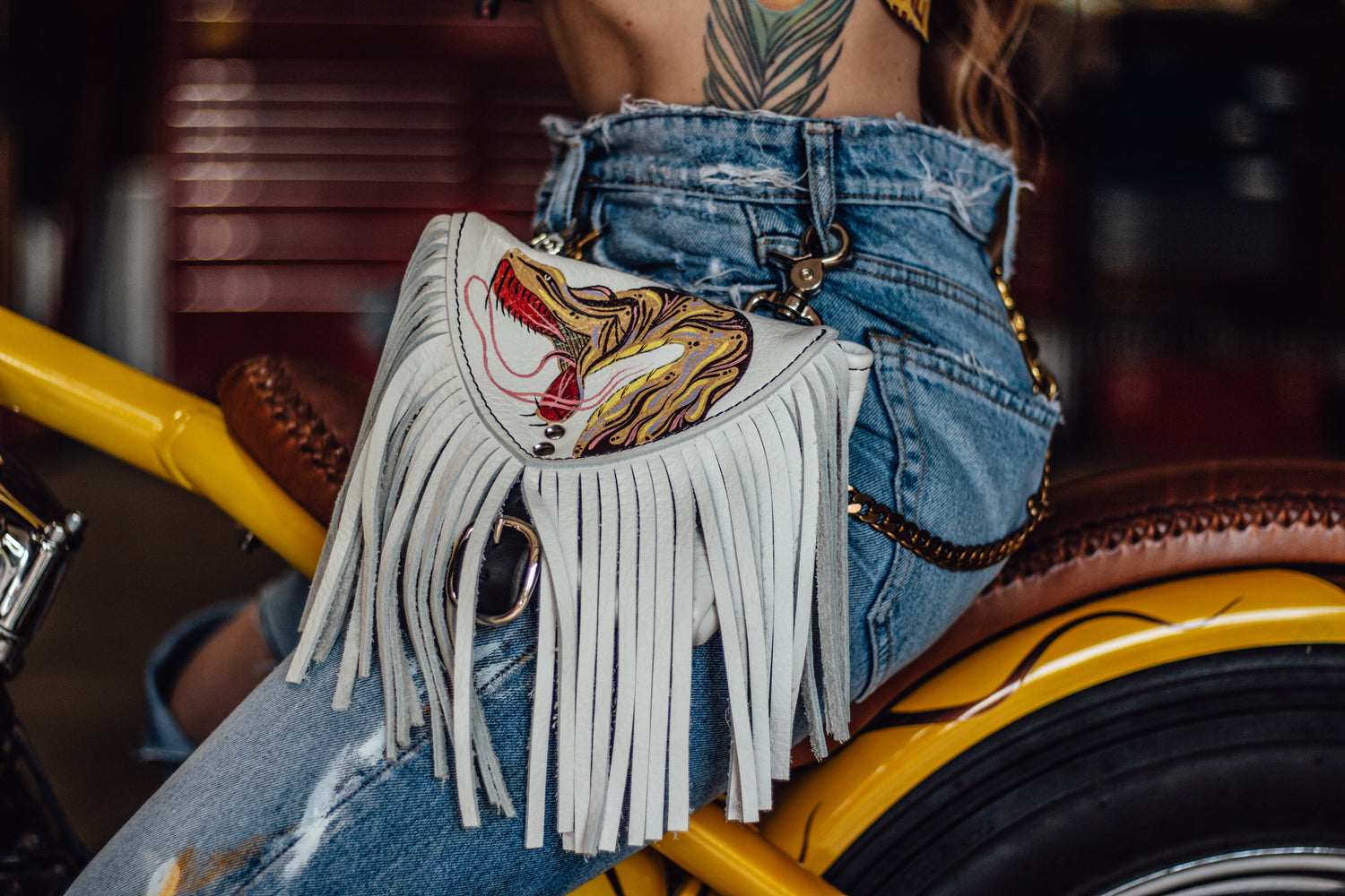 Limited edition hand painted snake designs for leather convertible bags by Bird Trouble